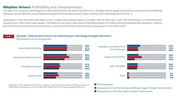 IndustryWeek’s research into which business drivers most impact manufacturers’ decisions to adopt digital manufacturing is interrelated, with real-time data being a unified thread. Manufacturing operations benefit from greater shop floor visibility, control, and insights to manage risks and grow profitably.