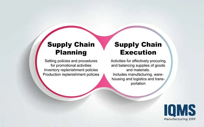 Supply chain execution, on the other hand, encompasses activities for effectively procuring and balancing supplies of goods and materials. It includes manufacturing, warehousing, logistics management and transportation.