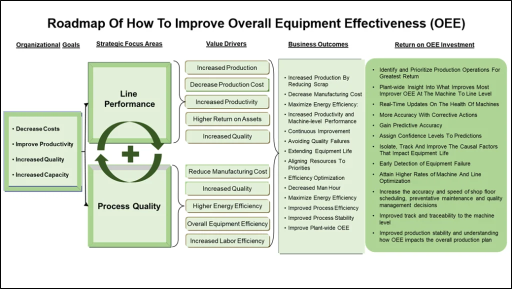 - Steps to improve line performance and process quality need to happen every day, and OEE is the data fuel that makes achieving that goal possible. The roadmap shown in step 3 needs fuel to make it work. OEE is the data fuel or energy that propels manufacturers to improve line performance and process quality gains. Further, manufacturers are now looking at the Cost of Quality’s implications on monthly financial performance to the machine level in the hope of further optimizing production line performance.