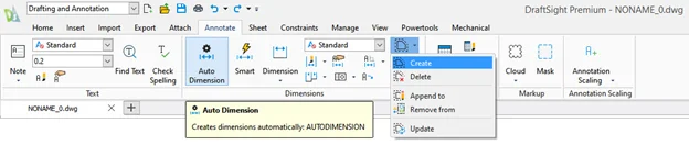 Auto Dimension makes linear and radial dimensions a snap. It uses your current Dimension Style and lets you control their placement. It’s a simple two-step process – a far cry from what we have to do in AutoCAD.