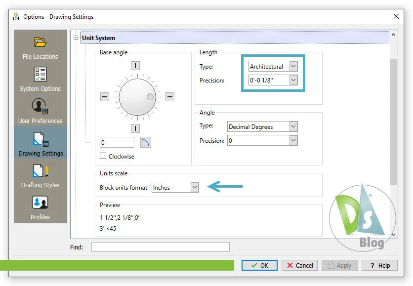 The first place to start is to understand how units work in DraftSight. You’ll want to open your Options dialog and expand the Unit System section. This is where you define your units.