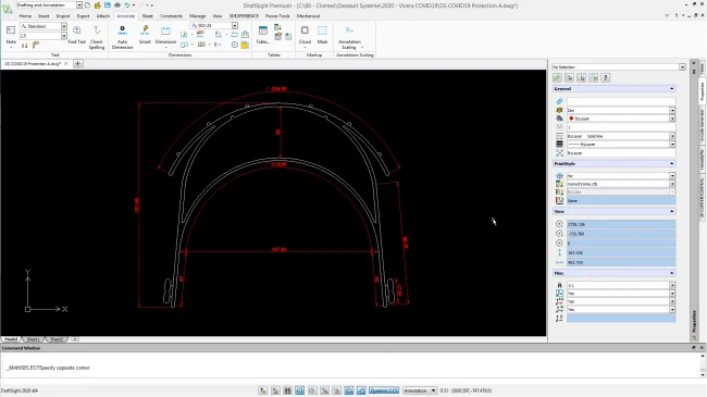 After extracting the files, open DS COVID19 Protection A.dwg in DraftSight Premium.