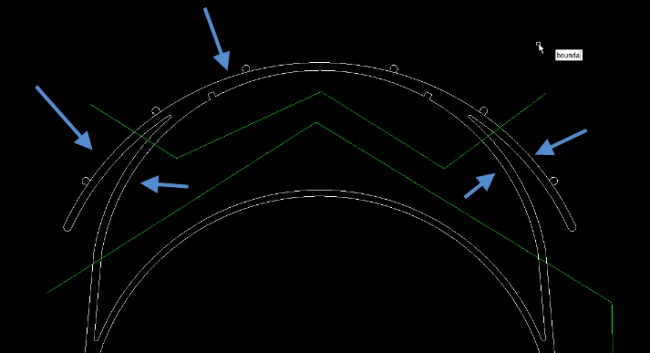 Next, turn off the “DIM” layer. We don’t need to see the dimensions at the moment. The drawing itself is quite simple, it is just a combination of Lines, Polylines, and Arcs. Our first objective is to create Closed Polylines, starting from the existing entities. (Since this is a symmetrical model, you could just do one half, Mirror it and then Join the two halves together.)