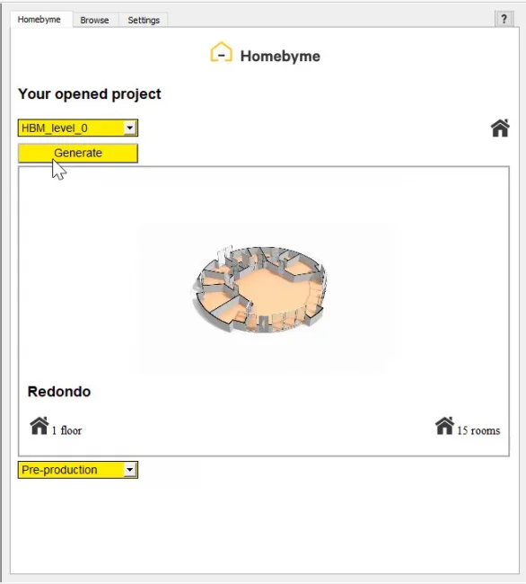 Finally, if your project has more than one level, select the level you want to import and then click on Generate.