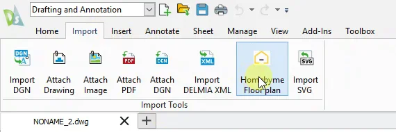 To start, click on the new Import Ribbon Tab and select Homebyme Floorplan.