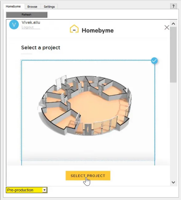Option 2 allows you to access your HomeByMe account from within DraftSight and select your project directly.