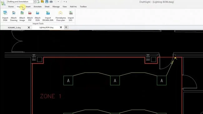DraftSight 2019 also includes a new Import Ribbon Tab (All Versions). This new ribbon tab which allows users to quickly import or attach files such as DGN, PDFs, DWG and other Image file types all from the one easy to use menu.