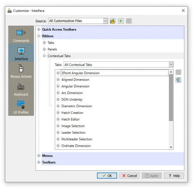 If you select a Reference file, the Reference tab with its relevant tools is automatically added and set current. If you click on Dimension, the appropriate Dimension Ribbon tab is added. And to make your workflow even more efficient, many tools will update the entity you’re editing in real time.