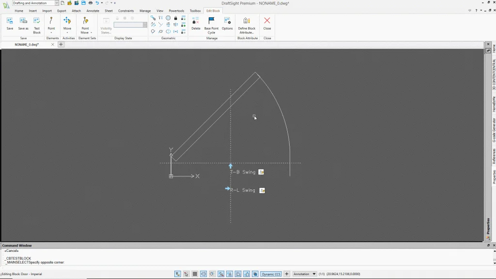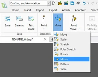 That’s it! Both mirror activities have been created, so you’re good to go. Or are you? You probably did everything right, but creating these custom controls can be tricky so making a mistake is easy. Fortunately, DraftSight has a Test Block tool for you. It’s right next to the Save and Save As tools on the left side of the ribbon.