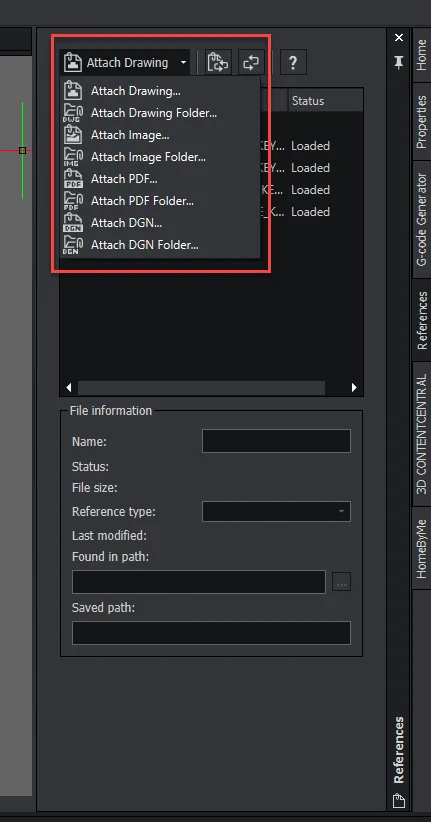 Now, users can select multiple DWGs, DXFs, images, DGNs, or PDFs at one time and import them all in one command workflow. Just follow the same process as you would before, but highlight multiple files in your file explorer rather than one. An additional new option is to just select an entire folder and all of the files in that folder will be attached as an xref.