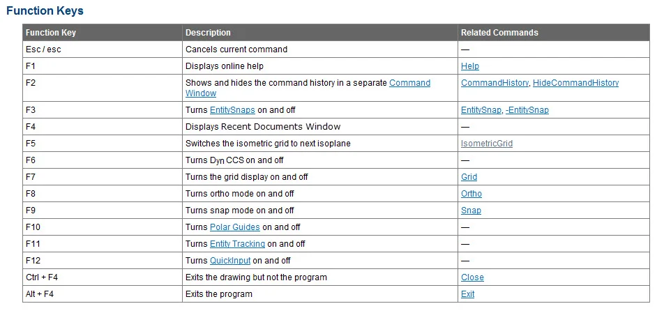 Last but not least are the Function Keys. These are the keys above the numbers on your standard keyboard that are labeled F1 through F12. Typically, they toggle an associated setting on or off. Once you start using them instead of finding and clicking on an icon, you’ll be sold too. For instance, it’s so much more efficient to toggle Ortho Mode on or off by pressing F8 than it is to use the Status Bar icon.