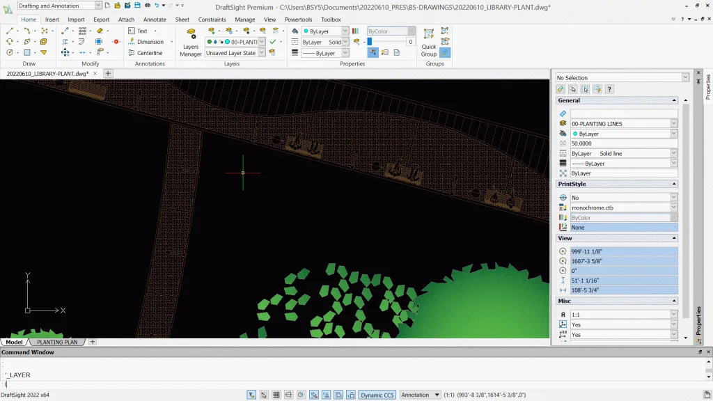DraftSight keeps the drafting process efficient and familiar. When designing with plants, you can draw precise bed lines, build and reuse tree plan CAD blocks, and label plant groups clearly, all using tools that behave the way you’d expect. It’s well-suited for plant CAD work because it handles complexity without overcomplicating the interface or the workflow.