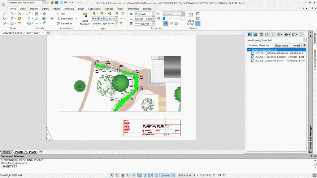 When hundreds of drawings are created digitally for a project, it can get pretty messy at times. Using a sheet set to compile and organize drawings is a critical step in the design process. Sheet sets allow landscape architects to locate and send out professional-level drawings to clients and stakeholders quickly.