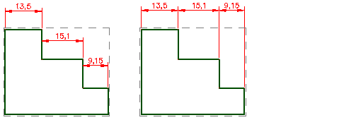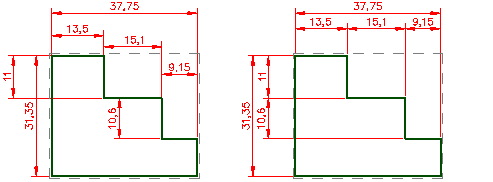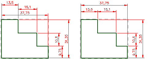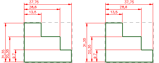These images show dimensioned geometry before and after they have been automatically arranged.