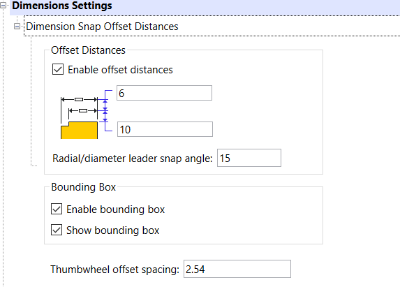 If you are a SOLIDWORKS user, you may be familiar with the Dimension palette, which is a tool that helps you add more information to dimensions and arrange them easily. The same Dimension palette is also included in DraftSight to aid the work of draftsmen. The thumbwheel in the Dimension palette increments the offset distance that is specified in the Dimension Snap Offset Distance, which can be found in the application options.