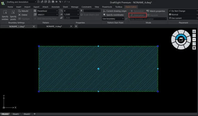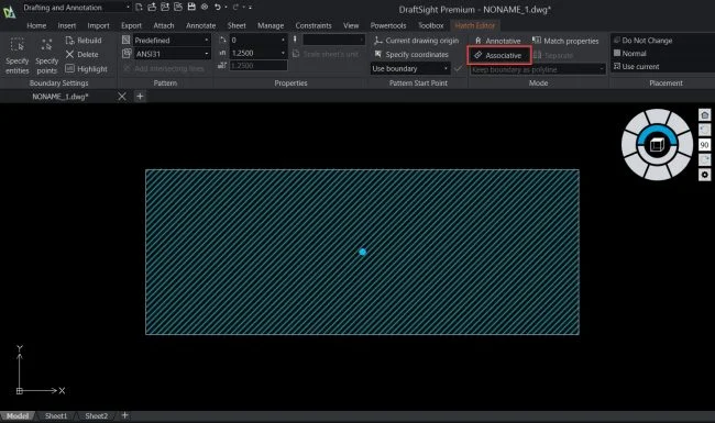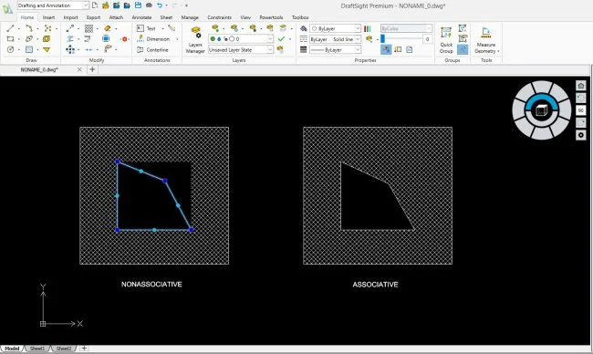 In the world of CAD, hatches are considered either associative and non-associative. With older releases of DraftSight, all hatches were associative. Meaning, they were linked directly to an object’s boundary. When the boundary changed dimensionally, the hatch would adjust to that new boundary.