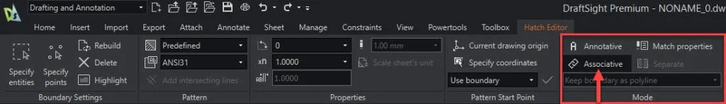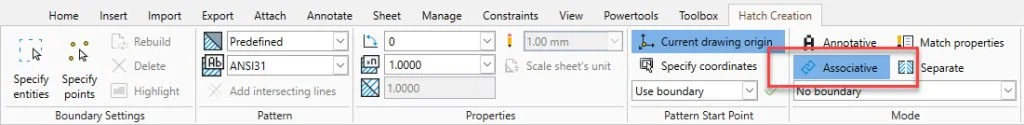2. On the Hatch Editor ribbon, click the Associative icon under the Mode panel.