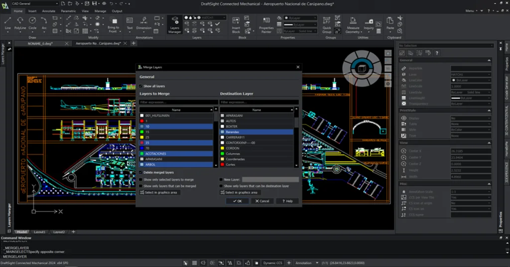 Layer management in DraftSight 2024 sees comprehensive improvements, with features designed to offer enhanced functionality. The software now provides the option to open the layers manager as a palette, streamlining the task handling. Additionally, it introduces the ability to merge multiple layers into a single layer, simplifying the organization of drawings and saving significant user time.