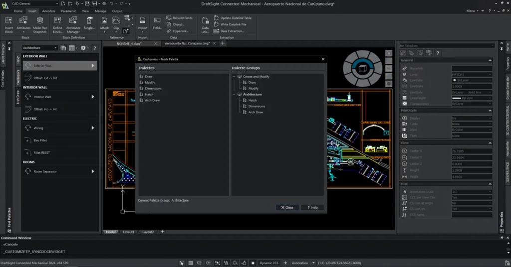 The tool palettes in DraftSight 2024 are designed to spur productivity. Users can efficiently create new palettes by just dragging and dropping, or importing and exporting pre-existing palettes created in other 2D CAD solutions. The customization extends to predefined settings including layer, color, line type, LineWeight, and promises time efficiency when inserting entities. Moreover, accessibility to the tool palette has also been simplified in the new CAD General workspace, ensuring a comfortable workflow.