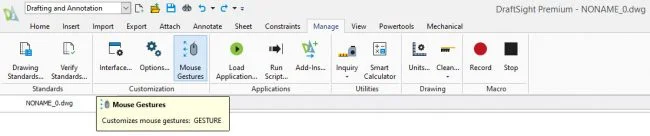 Similar to AutoCAD®, we have the ability to customize the buttons on our mouse to execute commands. But in DraftSight, we also have the ability to control what happens when we hold down the right button and simply move it in different directions. This handy feature is called Mouse Gestures, and I love it! You can set it up to access your favorite commands, so you can just go, go, go!
