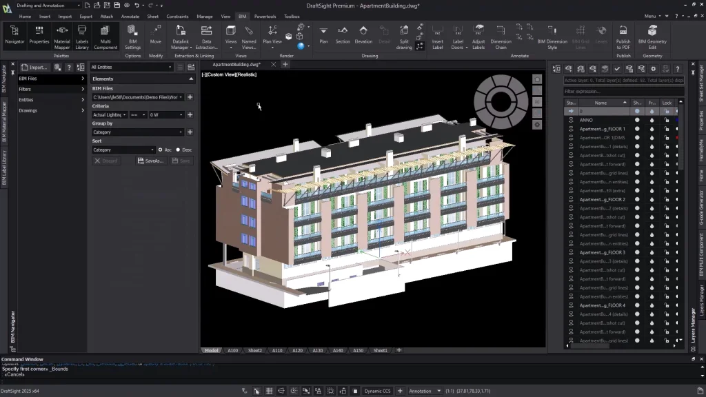 The BIM module enhances DraftSight’s functionality, making it a versatile tool for those managing BIM workflows. Key features include: