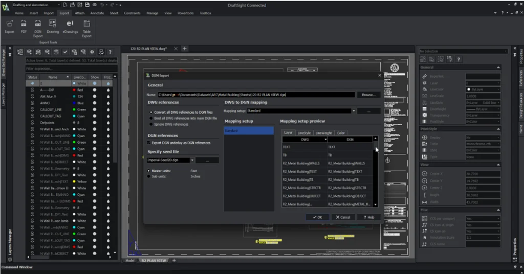 Streamline design and collaboration for civil engineering, architecture and industrial plant design with the ability to export DGN files from DraftSight.