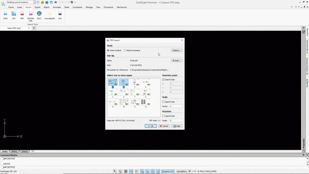 We were asked about importing geometry from PDF files from a recent webinar. This is a point of pride for us here on the DraftSight team. Not only do we provide the tools to import vector-based PDFs accurately, but we also allow you to bring in more than one at a time, and we even have a batch processing tool in case you have an entire folder you need to convert.