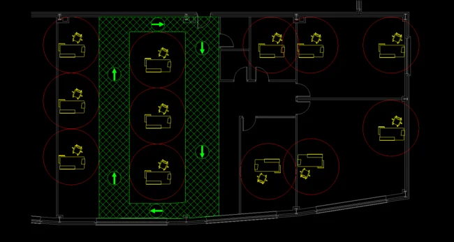 Month six of this strange new Covid-19 world and some of us are back in our offices and sitting at our desks. Mind you, it’s not like it was before, every room in the building is now in permanent use so we can adhere to the strict social distancing rules here in Ireland. It was relatively easy for us, we could visually work out spacing using DraftSight and we could not only meet the 2 metre / 6 feet distancing, but beat it.