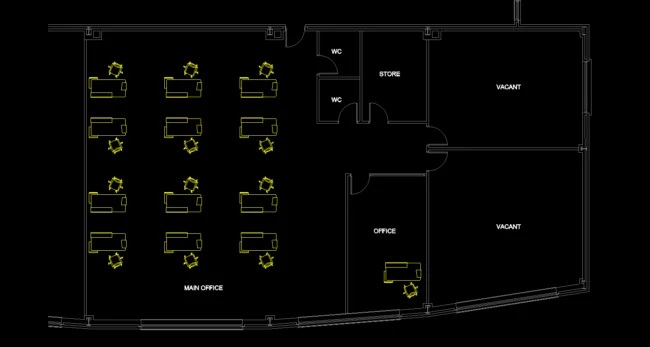 We started with a blank office layout drawing and a block of a desk and chair.