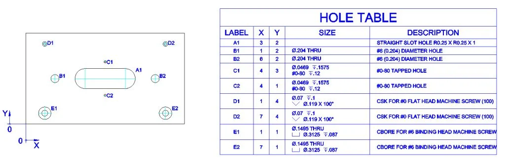 You can also specify geometric or textual hole dimensions and create associative charts of hole locations, which you can then add as a Hole Table Schedule to your drawings.