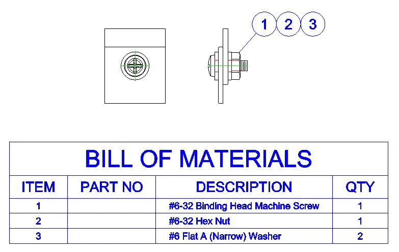 Finally, add Callout Balloons that are dynamically linked to the selected material assemblies. Utilizing this data, you can insert a Bill of Materials table that accurately reflects the hardware included in your design. The contents of your BOM table can also be exported as comma (CSV) or space-separated text files.