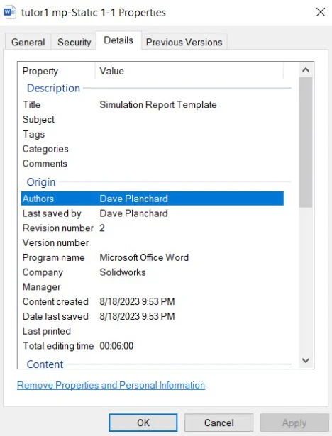 Educators have challenges. We ask you provide our SOLIDWORKS Simulation certification exams to your students in a proctored setting. We also provide a tool inside of SOLIDWORKS to determine the user name, creation date and modified date of a particular feature.