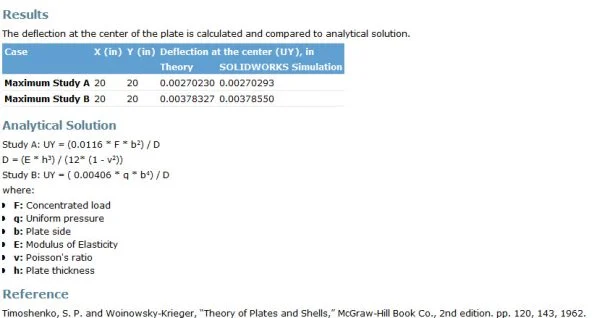 When I taught Finite Element workshops or presented at local ASME, ASEE, SolidWorks User Groups, I showcased NAFEMS benchmarks and advanced topics. SOLIDWORKS Simulation has examples in Event based motion, non-linear, dynamics, composites, design validation and optimization.