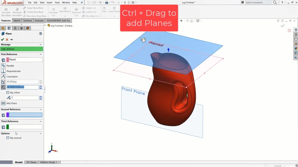 Planes are a core tool used to create geometry. Some planes are complicated, adding time and precision, while others can be made quickly so you can keep modeling as fast as possible. These are the two quickest and most useful ways to add reference planes to SOLIDWORKS
