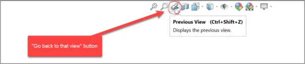 Previous View is used to go back to the previous camera orientation. Think about all the times you’re showing someone your model on the screen and they say, “Wait, go back!” You can never get it just right. But clicking this button does that for you. Keep clicking, and it will go back through all the previous orientations you looked at.