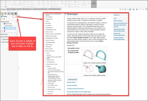 3. Look Up Solutions with Quick Access to the SOLIDWORKS Help File