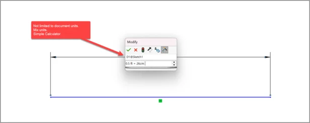 For example, if you’re working in metric but know a value in inches, just type “2 in” and SOLIDWORKS will automatically convert it to the document units. You can turn this up a notch by keying in basic math equations, transforming the dimension input box into a basic calculator. You can even mix units, such as “2in + 10mm.” Here’s a quick table to keep handy: