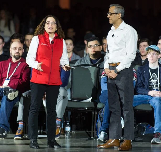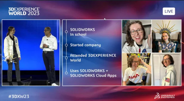 3DEXPERIENCE World 2023 Erin Winick Anthony with Suchit – from student entrepreneur in 2017 to STEM advocate, entrepreneur and inspirational leader.