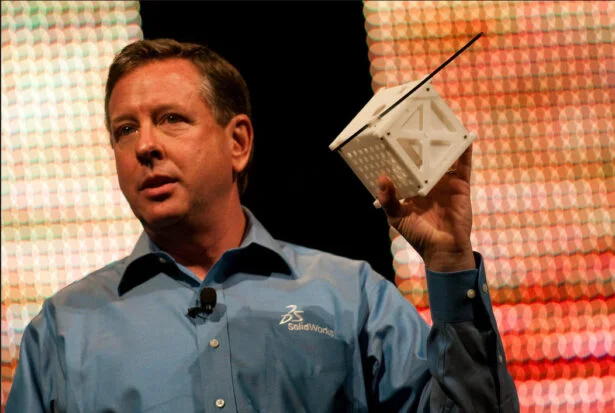 SOLIDWORKS World 2010 CEO Jeff Ray holds up CubSat from University of California Irving