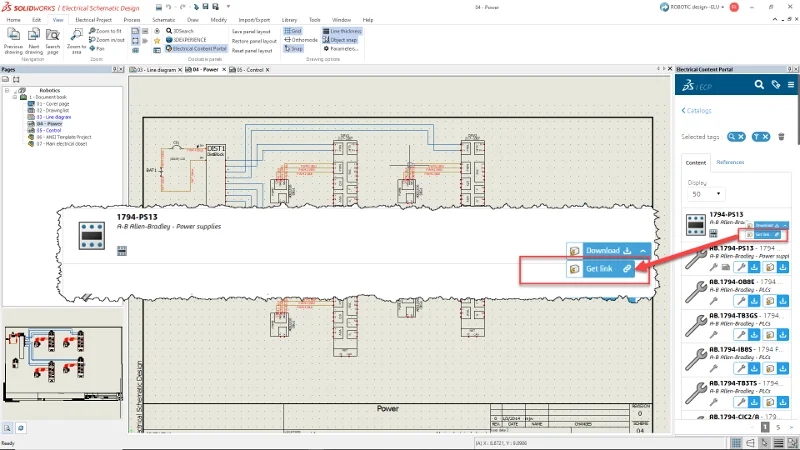 Electro-technical design of machinery and other products typically involves using lots of standard components. The ECP is a great place to find the electrical content you need for a design. Here you can conveniently grab any content that catches your eye and use it. Now, you can also just select the content and hit the “Get link” option and simply copy and paste it in your desired location to share with your team. You can paste it in your “Communities” or “Conversations” on the 3DEXPERIENCE platform, or in an email to share with team members.