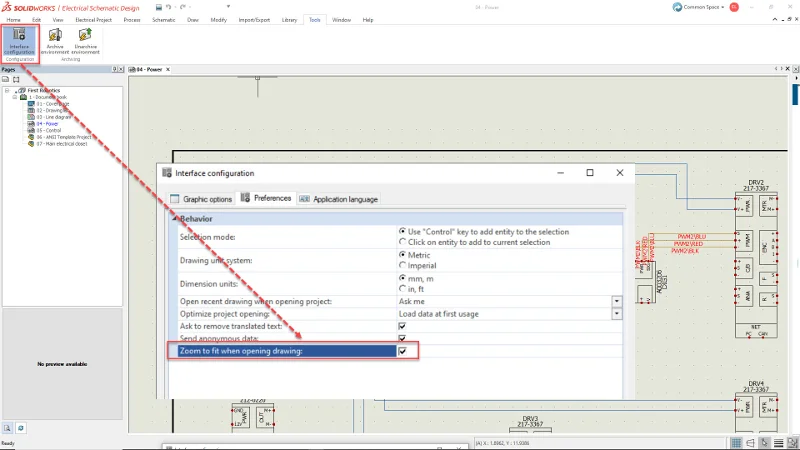 There’s a new option under the Interface configuration menu called “Zoom to fit when opening a drawing,” which automatically zooms to fit any schematic drawing you open to the full screen size.