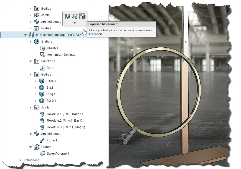 The Duplicate mechanism tool is a huge time-saver as it saves you rework. You can now create a new mechanism from an existing one to explore different options of a mechanism, instead of having to recreate the mechanism from scratch so you can easily run different tests on the same mechanism. For instance, you can adjust the attributes/values and run the motion study to explore different options to find the best possible outcome of how a product will behave.
