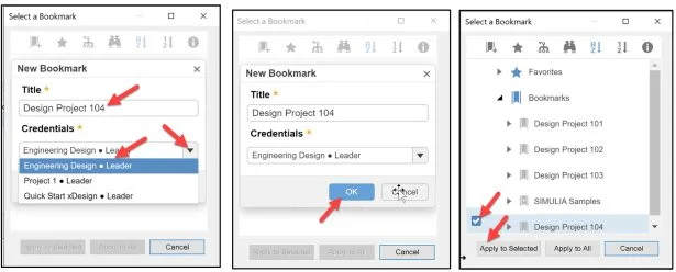 Enter Design Project 104 for New Bookmark Title. Select your Collaborative space. Note: The below illustration displays three of my Bookmarks.