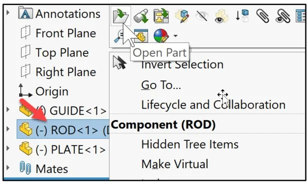 Click Open Part in the Context box.
