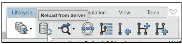 Reload from Server. Updates the selected revision in a SOLIDWORKS session with the latest version that exists on the 3DEXPERIENCE platform.
