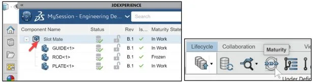 Change Maturity state of a component, assembly and several components with different maturity status. Maturity states provide information about the content’s completion stage and its validity.
