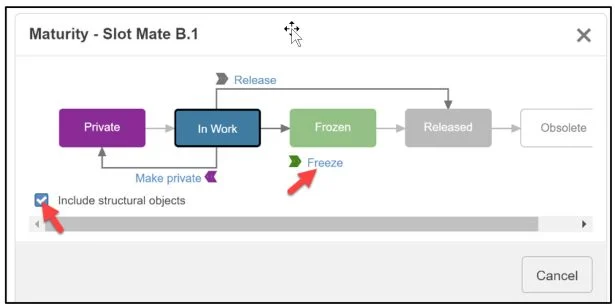 Click Include structural objects. This option changes the Maturity state of the children along with the parent.