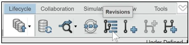 Click Revisions from the Lifecycle tab in the Action bar. The Revisions dialog box is displayed. Note: You can have different revisions at different Maturity States.
