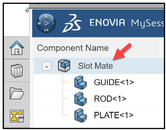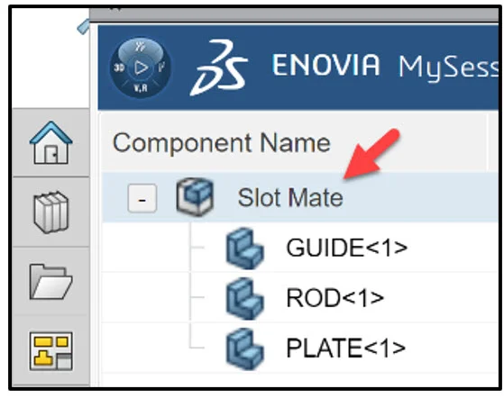 Open the SOLIDWORKS Slot Mate assembly that has not been previously uploaded or saved to the 3DEXPERIENCE platform.