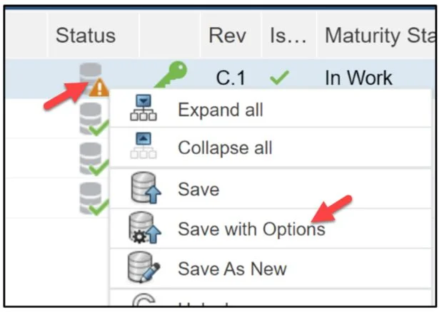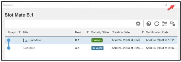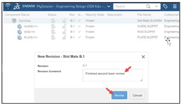 Change the Revision of the assembly. Note: Verify with your administrator/instructor that your credentials match the Collaborative space of the object you want to change the maturity of.